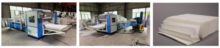 三折擦手纸机将分切好的擦手纸经压花切断,交互(hù)折叠成“N”型,使用时一张扣一张连续抽出,产品广泛用于酒店、办公室及厨房等供擦手用(yòng),方便卫生(shēng)。该机原纸适就性强,折叠、分切、计数多(duō)道工序一(yī)体,具有速(sù)度高,出纸整齐等特点。