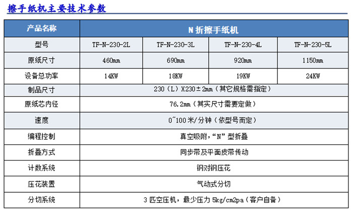 三折(shé)擦(cā)手紙機將分切好的(de)擦手紙經壓花切斷,交互折疊成“N”型,使用時一張扣一張連續抽(chōu)出,產品廣泛用於酒店、辦公室及廚房等供擦手用(yòng),方便衛(wèi)生。該機原紙適(shì)就性強,折疊、分切、計數多道工序一體,具有速(sù)度高,出紙整齊等特點。