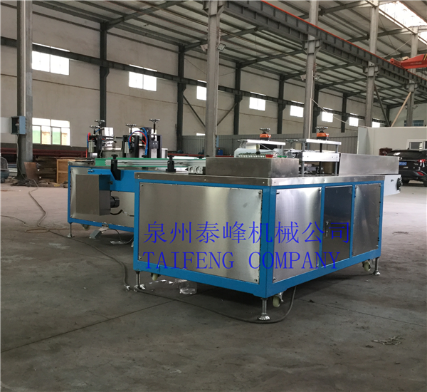 分切係統:由鋸帶、帶輪、工作板組成,工作板上有產品大小調整裝置,使產品達到可調目的(de)。