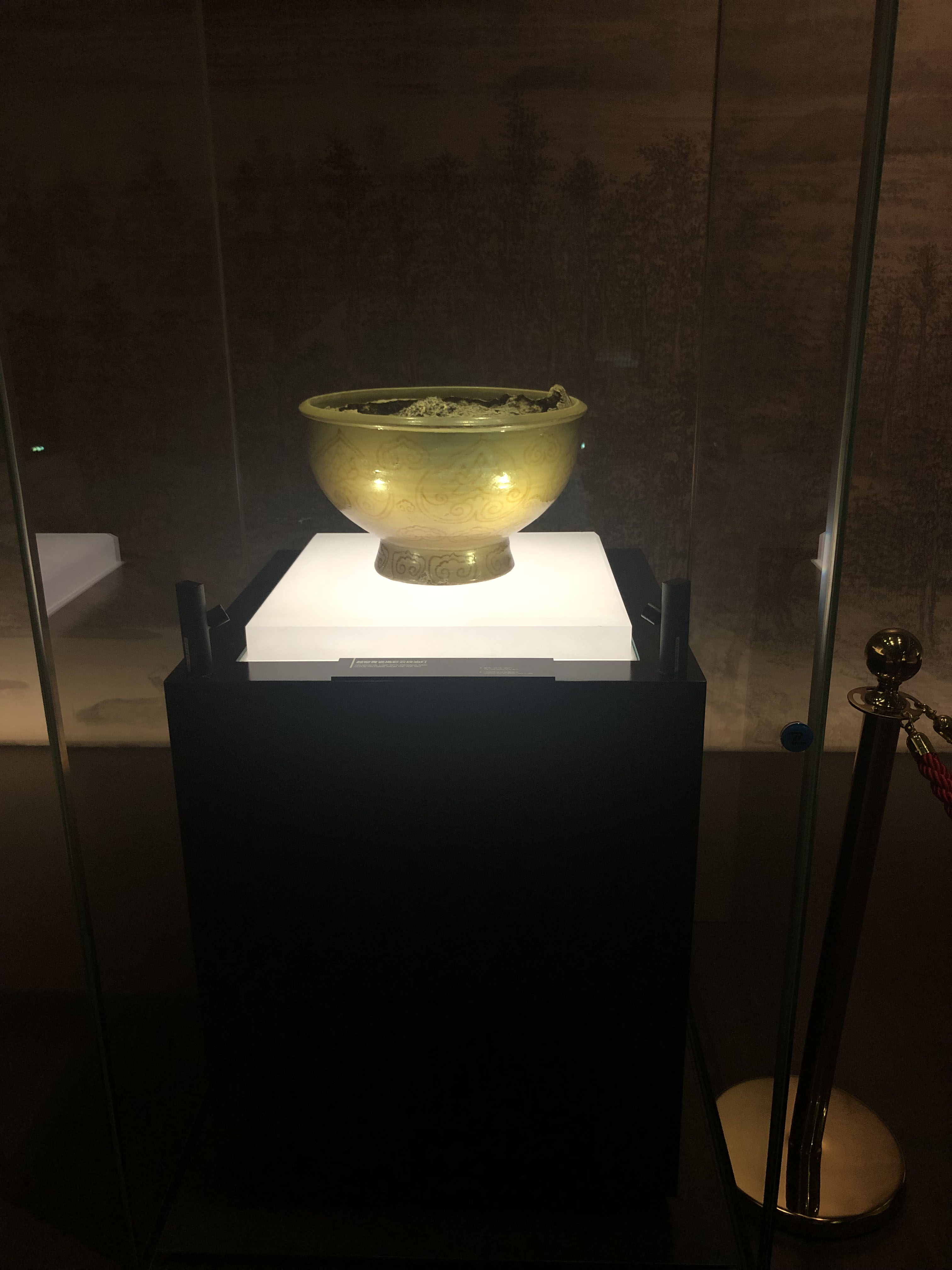 越窯青瓷褐彩(cǎi)雲紋油燈(唐)現場展櫃實拍圖