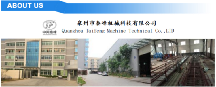 Quanzhou Taifeng Machinery Technology Co., Ltd. was established in 2013,as manufacturer is located in the "Fujian Optoelectronic Entrepreneurship Park," the laudatory name of Nanan Optoelectronic Base. After more than ten years of unremitting efforts and construction, the existing plant covers a total area of 9000 square meters. At the same time, the company has experienced, professional knowledge and technology, professional installation and maintenance, testing, dynamic team.