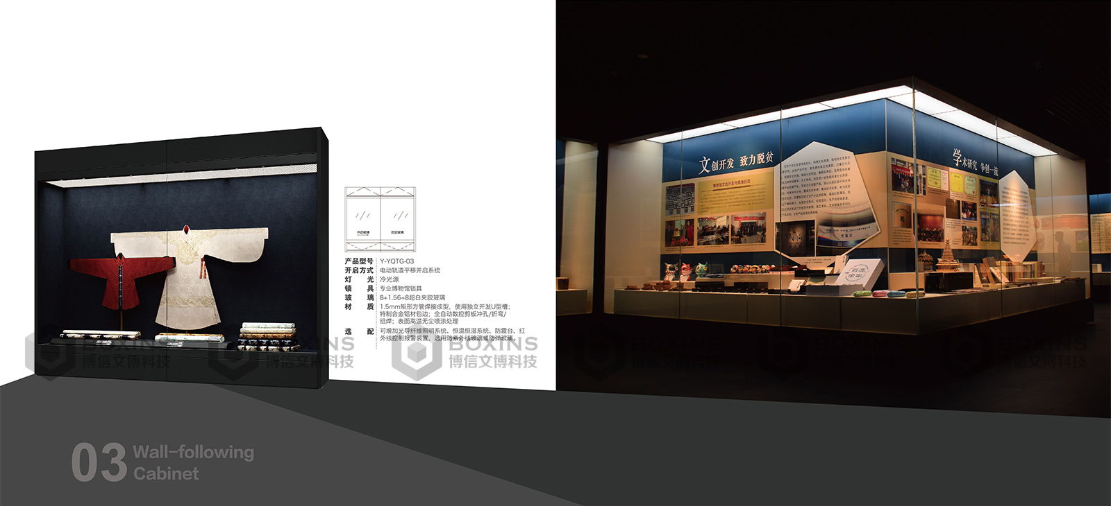 可增加(jiā)光導纖維照明(míng)係統、恒溫恒濕係統、防震(zhèn)台、紅(hóng)外(wài)線控製報警裝置,選用超白夾膠玻璃(lí)或低反射夾膠玻璃。