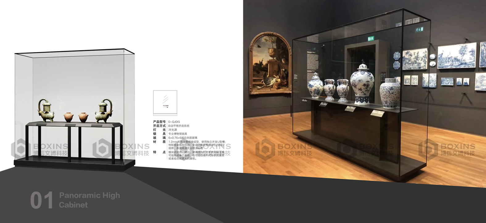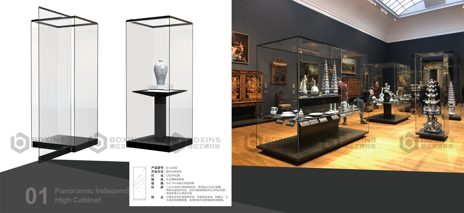 可增加光導纖維照明係統、恒溫恒(héng)濕(shī)係統、防震台(tái)、紅(hóng)外線控製報警裝置,選用超白夾膠玻璃或低反射夾(jiá)膠玻璃。