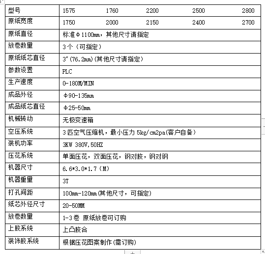 9.根據客戶的(de)要求可做雙壓(yā)花輥,可(kě)配套上膠複合裝置生產(chǎn)廚房紙,可配套1-3色彩印設備。